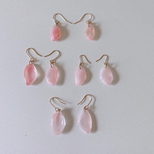 CanRosaの近くの鎌倉の海岸を散歩していると、さくら色のかわいらしい桜貝によく出会います。鎌倉の由比ヶ浜海岸では、昔からたくさんの桜貝が拾われ、お守りにされていました。桜貝は貝の厚みが1〜2ミリととても薄く繊細で、独特の美しい透明感があります。桜貝の自然の色や持ち味を大切に保ちながら、アクセサリーとして割れないように一つ一つ丁寧に仕上げました。